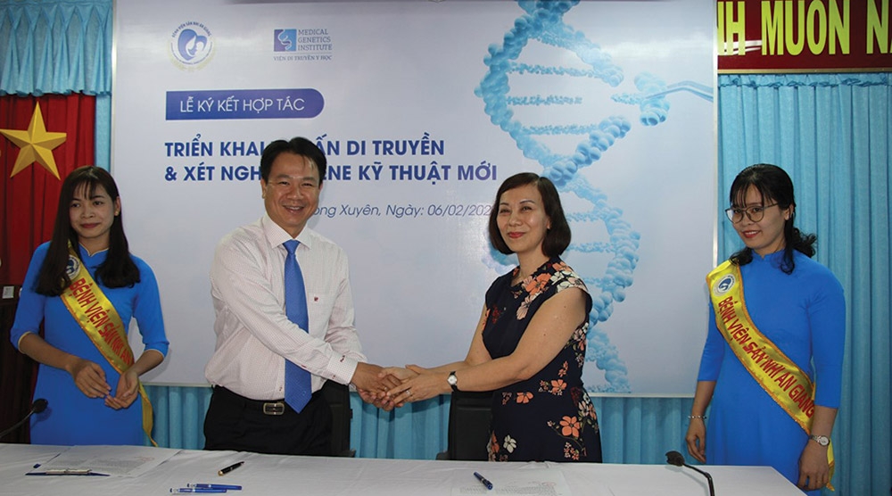 Giám đốc Bệnh viện Sản – Nhi An Giang Trần Quang Hiền ký kết hợp tác với Viện Di truyền Y học TP. Hồ Chí Minh triển khai tư vấn di truyền và xét nghiệm gene kỹ thuật mới